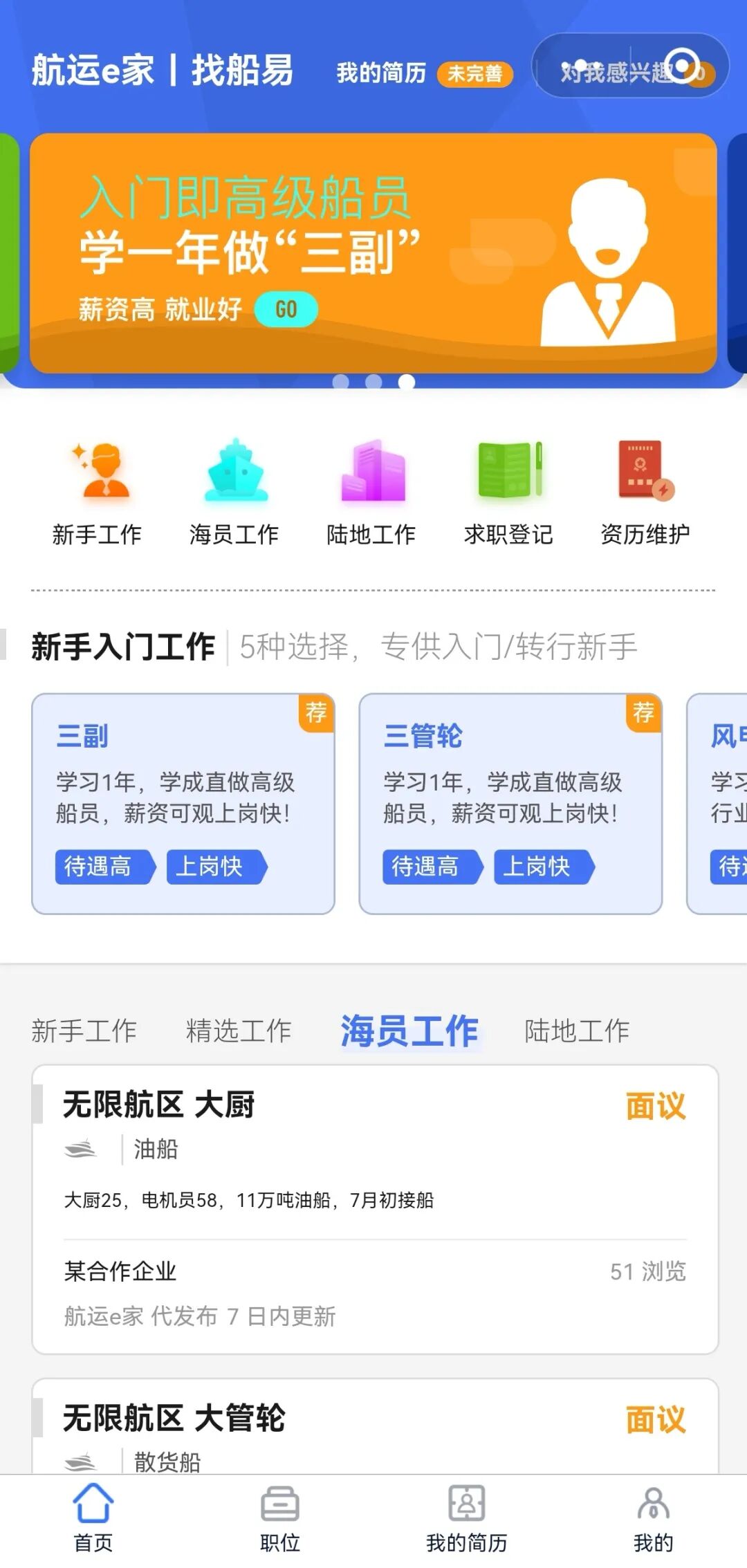 这里有75万+船员海员在等你,最新船员培训班期信息,船员招聘岗位,船员题库免费刷,航运资讯......